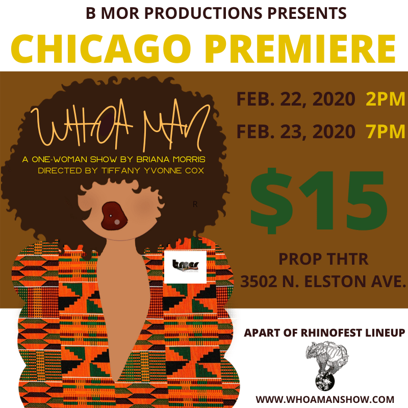 In this one woman show, WHOA MAN, Briana Morris dreads turning 30 and celebrating her milestone birthday, so she turns to the women in her family to help resolve this quarter life crisis. From her queen pin cousin’s thoughts on power, to her estranged aunt Bonnie’s story on escaping prison, to the introduction of Breyonce Fierce, Morris tells this story through unconventional characters who march to the beat of their own hightops and stiletto pumps. She reminisces on growing up in Chicago circa 1997 and losing her mom at a young age. Childbirth, revenge and sex are just the beginning topics of Briana’s family gathering. In this solo performance, Morris learns the ultimate truth about getting older… Birthdays are a BITCH! Learn more about the show at www.whoamanshow.com.